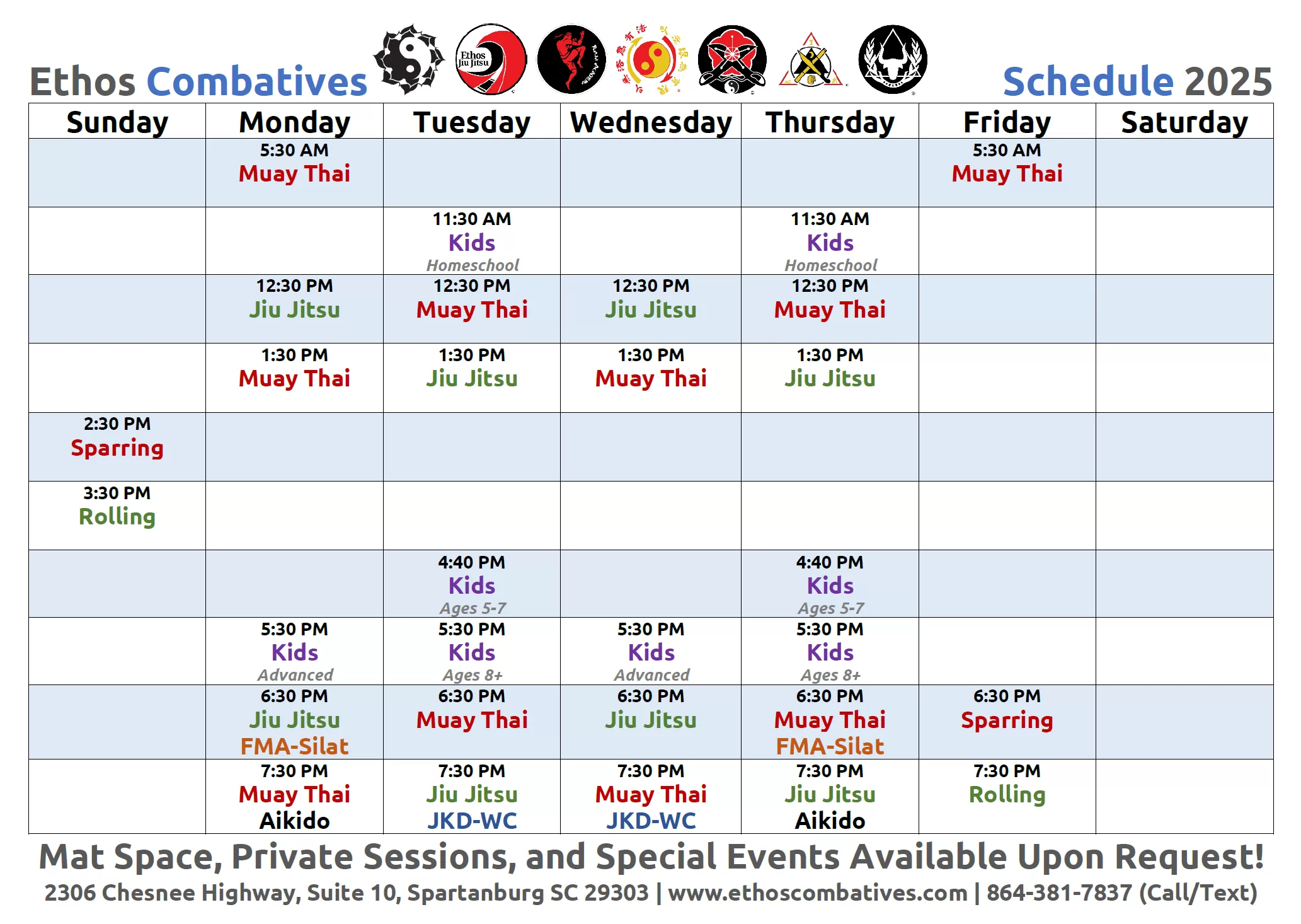 Add our public Ethos Google Calendar to your favorite calendar app to stay up to date on all of our classes and special events!